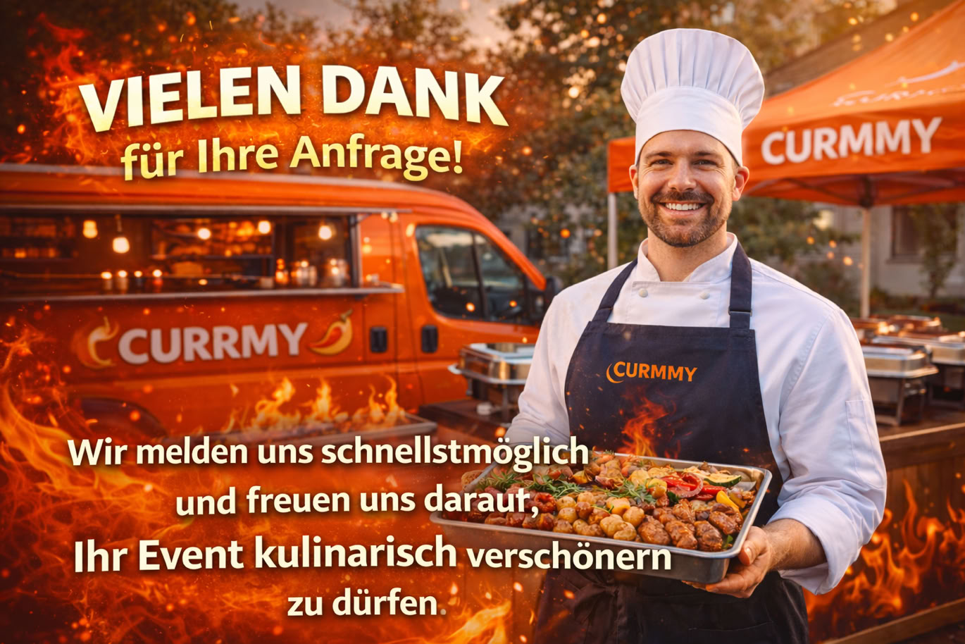 Entdecken Sie CurrMy, Ihren professionellen Catering- und Eventküchen-Service für unvergessliche Events und Feiern. Unser Team bietet frische, kreative Speisen direkt vor Ort, perfekt abgestimmt auf Ihre Wünsche. Ob Firmenfeier, Hochzeit oder Stadtfest – wir machen Ihr Event zum kulinarischen Highlight. Lassen Sie sich von unserem einzigartigen Foodtruck-Konzept begeistern und genießen Sie erstklassigen Service, der Gäste begeistert und Erinnerungen schafft.